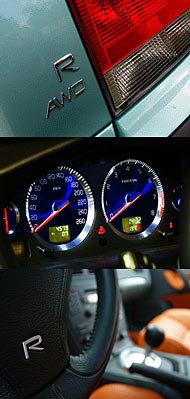 Med motorn nära arbetstemperatur glider vi iväg. Kopplingen är lättrampad och känns likadan som i vilken A4 som helst, här behövs inga kroppsbyggar-lår. Lådan löper lätt men distinkt mellan lägena och motorn hörs hela tiden, om än dämpat. I utgången av en rondell tar plötsligt mörkrets makter tag i mig och jag golvar högerfoten. Tvåans växel, cirka 40 km/h, torrt underlag. V8:an på 4,2 liter rycker tag i bilen innan foten ens nuddat mattan och vi pilar iväg. Maskinen drar frenetiskt genom hela registret och ger sig inte förrän strax ovanför 7 000 varv. Effektutvecklingen är helt linjär men accelerationen är inte ospännande för det. Fyrhjulsdriften med torsendiff gör bilen mycket riktningsstabil även under hård acceleration och de täta stegen i lådan ser till att fartökningen hålls hög hela tiden. Vid normal körning är stegningen lite väl tät och därför kan man använda sig av uteslutande ettan, tvåan, fyran och sexans växel och dra lite extra på de två mittersta spetten. Det gör man gärna, om inte annat så för att lyssna till motorns trummande i det högre mellanregistret. Styrningen är bergfast vid motorvägskörning och har bra känsla när vägen svänger, den treekrade sportratten ligger rätt i händerna. Man sitter dock och hoppar i stolen så fort vägen blir det minsta ojämn eller gropig, både fjädrar och dämpare är ordentligt hårda. Det ska ju vara sportigt, gud bevars. Körställningen är riktigt bra, man sitter nära ratten medan resten av förarmiljön, och den mörka inredningsfärgen, gör att det känns intimt. Det är stor skillnad att äntra den S60 R som funnits i min backspegel hela tiden. S60 R är öppnare inuti och plasterna har en ljusare grå färg. Hela interiören känns rymligare och luftigare. Förarstolen har samma inställningsmöjligheter, men svank- stödet får man veva själv – om man kommer åt ratten som sitter mellan stolen och mittkonsollen. Behövs det för övrigt nämnas att framstolarna är riktigt trevliga att sitta i? Nej, trodde inte det heller. Väl tilltagna i storlek, lagom skålade och stoppade stolar man kan färdas länge i utan att få sittsår eller andra obehag. Inget av baksätena är så värst trevliga att vistas i; dynan i Audi är hård och det är trångt för knäna. Bredden duger för två men inte mer. Volvo har skönare sits men lika dåligt benutrymme och klen takhöjd om man är av medellängd. Kvalitetskänslan är avgjort sämre i S60 R än i Audi S4. Den är absolut inte dålig, tvärtom, men mot Audi står den sig slätt. Funktionen och överblicken är riktigt bra men den där lilla extra förfiningen som finns i S4 har inte S60 R. Här har Volvo fortfarande en del att lära av de tyska märkena. En trevlig detalj exklusiv för Volvos R-modeller är de blå instrumentklockorna framför föraren, som är ett bra exempel på hur tilltalande design och perfekt funktion kan samsas. |