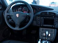 Den kaxiga boxersexan på 3,6 liter har ett ettrigt sound och två små turboaggregat (maximalt laddtryck 0,8 bar) ser till att maxvridet 560 Nm finns till hands redan från 2 700 r/min. Fyrhjulsdriften sköts av en viskokoppling mellan axlarna och har grundsättningen 95/5 procent bak respektive fram vilket gör att bilen trots allt är lite nervös när man ska köra över snösträngar på vinterväg. Är friktionen jämn på vägbanan går bilen som tåget. I extrema fall kan så mycket som 40 procent av kraften fördelas till framhjulen, till exempel på vår hala testslinga. Trots detta så är det en balansakt att köra 911 Turbo på långsladd. Blir sladdvinkeln en aning för stor (och man inte hinner rädda situationen genom att mata på med mer gas) så vänder bilen. Detta beteende hade troligen varit mindre påtagligt om bilen hade haft dubbdäck med mer sidogrepp monterade. ESP är standard och fungerar utmärkt vid körning på väg. På testslingan där friktionen är låg blir ingreppet väl abrupt ibland. Körupplevelsen handikappas mest av att vår testbil hade Tiptronic-låda. Som automatlåda är den klanderfri, men körkänslan blir inte densamma som med en manuell låda. För man spaken mot sig kan man – endast – växla med hjälp av knappar på rattekrarna. Dessa sitter lite avigt till, och vid aktiv körning så kommer man lätt åt dem ofrivilligt, med en oväntad upp-/nerväxling som följd. Det uppskattades inte av testlaget, och betyget blev därefter; 75 procent. Med manuell låda så hade en topplacering inte varit helt otänkbar… |