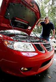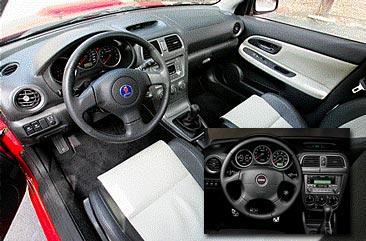 Och Saab lever verkligen som man lär. Ingenting är längre heligt – allt är möjligt – och så måste det vara när man kämpar för att överleva. Det går att hävda att Saab 9-2X bara är en pinsam påminnelse om hur illa skött Saab är. Eller att det helt enkelt är en riktigt bra bil, som bara väntat på att få födas. Subaru Impreza har ju i ärlighetens namn varit för obekväm för normala öron, kroppar och ögon för att bli en riktigt succé. Visst, hårdhudade rallyfanatiker har självklart köpt sig en Impreza, och älskat sin bil. Men alla andra har inte kunnat stå ut med bullret, den stötiga fjädringen, den pappiga känslan och det udda utseendet. Första anblicken säger absolut Saab. Fronten är om man frågar mig snygg, hungrig och klockrent Saab. Det är egentligen bara den sneda c-stolpen som röjer bilens ursprung, men den ser å andra sidan ut som om den var hämtad från Saab 9-5. Tur som tokiga har man haft med grundmaterialet. När jag gått runt bilen några varv känns den helt naturlig, som en bil som Saab byggt i många år. Kompakt och aggressiv. Det som modifierats är fronten, motorhuven, trösklarna, bakluckan och baklamporna. Saabdesingern Ola Granlund har gjort ett riktigt bra jobb med enkla medel. Öppnar dörren och sätter mig ner bakom ratten, som har en Saablogotyp. Okej, nu sjunker Saabkänslan betydligt, men hamnar den under fryspunkten? Instrumenten är Saabiga, mittkonsollen är omgjord och metalliclackerad, dörrsidorna ser ut som Saabs och klädseln över Subarustolarna är ny. Men mycket mer har inte skett. Ventilationsgaller och hela instrumentbrädan är Subarus. Nightpanel saknas liksom en kunnig Saabfärddator och för den delen en navigator. Resultatet är mer städat än i en Subaru med ett snäpp högre kvalitetskänsla, men det känns inte direkt unikt. Drar igång Aeromodellens 227 hästkrafter med nyckeln som sitter där nycklar brukar sitta på alla andra bilar, inget fel med det – eller hur BMW, Volvo eller Audiägare? Motorljudet är definitivt inte Saabs, där framme smattrar en boxerfyra igång på sitt karaktäristiska vis. Kopplingen är tung, växellådan tämligen kärv och lite gummiartad i ingreppet. Men full gas från stillastående märks inte i ratten, fyrhjulsdrift har absolut sina poänger. Boxermaskinen trummar på; vill ha mer varv, mer gas, mer att förbränna. På låga varv känns maskinen bortdomnad, den arbetar kraftlöst och ointresserat. Först efter 3 000 varv kommer det lite livsgnista och vid 4 000 varv sätter den fart ordentligt upp till 6 000 varv. Segheten på låga varv förstärks givetvis av fyrhjulsdriften, som stjäl kraft. Bilen känns helt enkelt förvånansvärt tung och svårväckt. Fabrikssiffran 0-100 km/h på låga 6,4 sekunder känns hårdtrimmad, men förklaringen är självklart fyrhjulsdriften som ger snabb take off. På höga varv skjuter det på rätt ordentligt och när jag kastar in bilen i en av de otaliga och snåriga kurvorna i bergen utanför San Diego svarar styrningen snabbt och chassit känns stabilt och neutralt. Växellådan är lite kärv, vilket gör det lite pyssligt att hålla varvtalet uppe, men kul är det. Jämfört med Subaru Impreza har styrväxelns infästning förstärkts och utväxlingen förändrats – styrningen har blivit känsligare och har bättre rakt-fram-känsla. De främre tringellänkarna är av aluminium, för lägre vikt, hjulvinklarna har finjusterats, stötdämparna likaså. En hel del gummibussningar har också kalibrerats om. Bilen har dessutom fått ny-utvecklade Bridgestone Potenza som i värstingutförande håller dimensionen 215/45 R 17 och de tycks bita bra. Lätt understyrning in i snäva böjar, fin styrkänsla och berg-stabilt ut ur böjarna. Krängningen är lagom och det enda som fattas är faktiskt kraft! Med en Subaru Impreza WRX STi ”Peter Solberg” med 265 hk i färskt minne känns Saab Aeron bara snäll. Den brutala överstyrning ut ur böjarna som Solbergaren bjuder på, om man trycker på ordentligt, finns inte alls i Saaben. Ute på highways i 120 km/h händer absolut ingenting när jag trycker på full gas på femman. Inte heller på fyrans växel vaknar maskineriet och på trean känns det fortfarande ganska segt. Nej, i med tvåans växel och det blir en kort explosion innan det är dags att byta växel igen. Inte mycket Saab Turbo över det beteendet. Ska det vara busigt och skojigt på riktigt måste det till ett trimchips för att få upp trycket på låga varv. Men på frågan om Saab kommer med en STi-version, eller kanske rättare sagt en ”Stig Blomqvist edition” med 265 hk som verkligen går som ett troll, skrattar Saabfolket klädsamt… Här fortsätter provkörningen ![]() Samma, men lite annorlunda. Inredningen har fått en varsam Saabifiering. Ser du skillnanderna jämfört med Subaru Impreza (infällda bilden). Jo, det finns fler skillnader än ratten. |