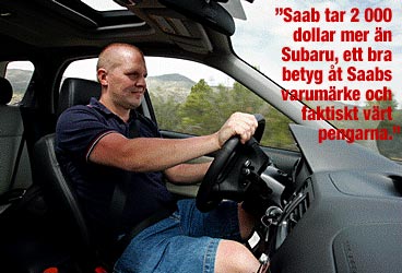 Att Linear har mindre bromsar än Aero märks inte direkt, men däremot märks den lite mjukare sättningen som medför cirka tio procent mer roll, den lite långsammare styrningen (3,0 rattvarv mellan fulla hjulutslag mot 2,7 i Aero) men framförallt ”allseason”-däcken som är standard. Totalt sett betyder chassiförändringarna och de smalare däcken att bilen blir rejält understyrd. Inte alls rallykul. Fy för allseasondäck! Men Linear rullar riktigt mjukt jämfört med Aeromodellen, som är på gränsen till stum – båda Saabarna är dock mycket bekvämare än Subaru Impreza WRX STi. Men den största skillnaden mot Impreza är ljudnivån. Saab har lagt i mattor med högre densitet, tjockare torpedväggsisolering, isolering i taket, runt c-stolparna samt i bagageutrymmet. Även växelspaksdamasken och infästningen av växelspaken har ljuddämpats. Resultatet är en helt okej ljudnivå, cirka två-tre dB(A) lägre än för Subaru Impreza, enligt Saabteknikerna. Skillnaden är stor. Man åker alltså rätt bekvämt. Framstolarna är bra, men inte Saab-bra. Baksätet är förvånande bekvämt, men sitter högt och benutrymmet räcker för normallånga. Om bagageutrymmet finns inte mycket mer intressant att säga än att det rymmer 355/1 265 liter, är fällbart och att bakluckan är av halvkombityp – som på en ”riktig” Saab. Säkerhet är också ett av Saabs så kallade kärnvärden. Därför har man lyft in framstolar från Subaru Legacy, med whiplash-skydd och dessutom monterat riktiga nackskydd i baksätet. Men tyvärr saknas sidokrockgardiner och ESP finns inte ens att få som tillval. Till Saabaruns försvar ska dock sägas att Impreza klarat fyra stjärnor i det australiska NCAP-testet som i stort är likvärdigt med Europas. Så vad ska man egentligen tycka om Saab 9-2X? Domen påverkas självklart av priset. I USA kan man välja en Saab 9-2X Linear med 165 hk och fyrhjulsdrift för samma pengar som en ny Volvo S40 2,4 med 140 hk (cirka 23 000 dollar). Volvon är självklart mycket modernare, mer sofistikerad och premium. Men inte lika ”wierd” och som sagt inte fyrhjulsdriven. För samma pengar som en Saab 9-2X Aero med 227 hästkrafter kan amerikanen köpa nya Volvo S40 T5 med 220 hk. (Cirka 27 000 dollar). Ser man det ur den synvinkeln skulle 9-2X Aero kosta runt 265 000 kronor i Sverige – och då skulle Saab definitivt hitta en massa köpare här hemma! Men så blir det inte eftersom Saab bestämt att bilen bara ska säljas i Nordamerika. Sugna Saabfreaks är hänvisade till importfirmor och det lär kosta åtminstone 100 000 till för en färdig bil här hemma. Alltså minst 350 000 kronor. Saab hoppas att cirka 8 000 amerikaner och kanadensare ska slå till på en 9-2 per år, för då blir projektet en bra affär för både handlare och Saab Automobile. Någon annanstans skall bilen inte säljas – livslängden är max tre år och utan dieselmotor har den ingen chans i Europa. Men det kan vara intressant att veta att Saabs investering i detta bygge är långt mindre än vad det kostar att bygga om dagens Saab 9-3 SportSedan till kombi (9-3 Sportsback, som kommer nästa sommar) och pengar in, snabbast möjligt, är vad Saab behöver. Nu. Nästa generation Impreza är för övrigt redan under utvecklande och självklart kommer också Saab med en egen version som blir mycket mer Saabifierad än detta första skott från höften. Men Saab 9-2X är inte Saabs första försök i fuskandet med varumärken. Du kommer väl ihåg SaabLancia 600? Det var en ren skäpprodukt och Saab vågade inte heller bygga en ”Saab Integrale” vilket åtminstone hade varit fränt. Subaru stämmer mycket bättre med Saabs image och är absolut ingen dum partner för framtiden. Så, är du redo för slutklämmen? 9-2X är ingen modern premiumbil som gör underverk för Saabs varumärke. Men denna halvkombi är absolut mer udda och fränare att köra än syskonen 9-3 och 9-5 – trots att de har startnycklarna i golvet. |