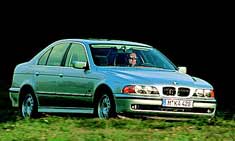 Eftersom hjulupphängningarna räknas till den ofjädrade vikten blir givetvis en viktminskning hos dessa delar viktig för komforten. BMW 523i visar att det finns stora möjligheter för utveckling just på det området: Vagnen sväljer även mycket små ojämnheter, som ju annars tillhör de största problemen för fjädringstekniker. Känsligheten är utpräglad och inte ens avloppslock tränger längre in än till förarens öron. Men det är bara ena sidan av medaljen. Lika komfortabel som den är, lika avancerad är vagnen när det gäller körsäkerhet. Styrprecisionen är förstklassig, liksom bromsarna. Och den som gärna kör lite hårdare i kurvor inser snabbt vad BMW menar med körglädje. Lätt, utan ansträngning, gasar man genom även avancerade kurvsekvenser i ett tempo som vagnen faktiskt inbjuder till. Om man tar i, kan man hänga med sportvagnar. Säkerhetsutrustningen håller hög nivå, inte minst tack vare antispinnsystemet som hindrar den 170 hästkrafter starka bilen från att glida ut med bakdelen i oväntade situationer.