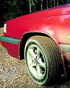 Icke så en fyrhjulsdriven 850. Så länge hjulen driver så greppar det förbluffande väl och styr därtill, markerad understyrt, pålitligt runt böjarna. Först när en snabb kurskorrigering eller uppbromsning måste göras avslöjas hur lömskt underlaget är, men bilen är fortfarande konsekvent balanserad - faktiskt mer så än den sladdvilligare framhjulsdrivna 850. Bara under rent forcerad körning kan ett gasuppsläpp driva ut bakhjulen i något som kan likna en sladd. Efter att bilen har balanserats mot överstyrning kan den hänga kvar så ett tag om gasfoten hålls hårt pressad mot durken. Utan provokationer är 850 AWD förvånansvärt konsekvent, även jämfört med andra bilar som använder samma typ av drivsystem (se separat ruta). Nu frågar sig vän av körglädje: har Volvo byggt en tråkig fyrhjulsdriven bil? Svar: Ja, om man med det menar en bil som lätt kan balanseras på bredsladd mellan snödrivor och vägkanter. Faktum är att den framhjulsdrivna 850:an är lättare att köra brett än den fyrhjulsdrivna! Förutsägbar och framkomlig Rensat från emotionellt trams har dock 850 AWD utmärkt förutsägbara köregenskaper, utan de inslag av lynnighet som många 4WD-bilar dras med.