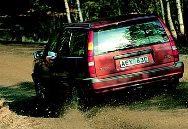 Bilen är höjd, men bara tre centimeter, vilket egentligen utesluter exkursioner i naturen. Volvo använder sitt anti-spinn-system TRACS i kombination med fyrhjulsdriften, som begränsar (men långt ifrån helt förhindrar) hjulspinn vid start. Start på torr asfalt resulterar som mest i ett lätt spinnade fram innan TRACS-regleringen (via bromsarna) och bakhjulen tar upp momentet och sätter ner det i vägbanan. Sprinten till 100 avverkas för övrigt på knappt nio sekunder - hyggligt men knappast imponerande piggt. Inte heller segdragningen på höga växlar imponerar på ett sätt som man kan förvänta sig av turbomotorns ork på mellanvarv. Positivt nog verkar dock bränsleförbrukningen hålla sig inom vettiga gränser. 850 AWD återvände efter testcykeln med lägre förbrukning än den lättare och starkare 850R! Volvo har använt delar av bakaxeln från 960 i 850 AWD, vilket mirakulöst nog inte har inskränkt det minsta på bagageutrymmets volym. Någon skillnad i komfort mellan AWD och FWD lyckades vi inte märka av, vilket skall tolkas som positivt. AWD har fått nivåreglering som standardutrustning, det håller bilens fjädring i skick även tungt lastad. Volvo säljer sin AWD för 315 000 kronor, vilket faktiskt inte är så blodigt när man betänker att en 225-hästars framhjulsdriven turbo kostar ungefär lika mycket - med betydligt enklare utrustning. Med AWD följer bland annat luftkonditionering på köpet. Och - allt som oftast - drivning även bak. Gunnar