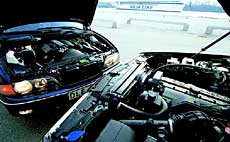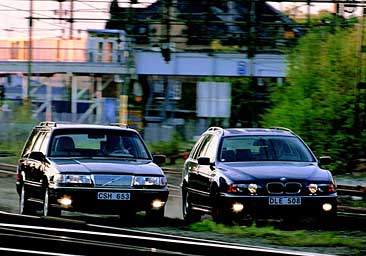 Det var då han hade börjat frilansa. Nu var han i uranbranschen och det var hans team som hade layoutat hela den här operationen. Leverans i gryningen. Med snabbgående motorbåt från Riga... Så väcks jag abrupt ur mina funderingar av att det skrapar till i den bärbara komradion: "Sätt på dimljusen så blir det lite schysst blänk i rälsen". Det är vår fotograf Roger Schederin som har jagat upp både Mattias Persson och undertecknad i svinottan för att få till några fräna kort på de båda testvagnarna. Något han ska få igen för vid lämpligt tillfälle. Det är inga problem att få fantasin att flöda ymnigt nere vid Värtahamnen i ett folktomt Stockholm vid den här tiden på morgonen. Framför allt inte i två bilar som dessa. Rikligast flödar den i BMW:s nya 528 Touring. En kombi som är svår att matcha. Vår tanke är ändå att Volvos värsta V90 med 204 hästars sexa ska ha något att sätta emot. Med tanke på att BMW:n är precis nybakad, att V90 har sina rötter i gamla 760 och att grundpriset skiljer 82 000 kronor är det lite som att jämföra äpplen och päron. Men i övrigt spelar bilarna i ungefär samma division. Två stora hästkraftstinna statuskombis som sväljer rejält med last. |