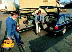 Om vi börjar med lastegenskaperna så har Volvo bäst volym i sin låda. Det gamla skåpet erbjuder ett alldeles utmärkt lastutrymme med bra öppning. Synd bara att lastvikten är så låg. BMW kan ta 237 kilo mer laglig last. Dessutom finns fler finesser. Till standardutrustningen hör öppningsbar bakruta som gör det mycket enklare att lägga in och ta ur småsaker. Som extra tillbehör finns också en lastskiva som går att dra ut 60 centimeter utanför lastöppningen. Något som underlättar i- och urlastning betydligt. BMW:s touringmodeller har tidigare varit att betrakta som rena sportkombis. Med den nya femman tar märket ett rejält steg in i den klass där man förenar nytta med nöje.