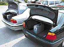 Genom den numera så kända "älgbanan" styr trots detta en fullt lastad 523i pålitligt igenom undanmanövern, men drabbas av ett yvigt bakvagns-kast i returen genom den sista porten. Huvudreglen är att aldrig sluta köra, eftersom det standardmonterade antispinnsystemet sätter gränserna och ser till att ytterligare retursladdar uteblir. Den fullastade 328i rullar på bredare däck (225 mot 205) och har dessutom sänkt sportfjädring (kostar 2 854:-), och kränger därmed mindre och klarar betydligt högre fart genom undanmanöverprovet än 523i. Styrresponsen är imponerande kvick trots att bilen knäar ordentligt över bakhjulen, men antispinnsystemet hindrar inte bakvagnen från att plötsligt bryta ut i en abrubt sladd med kort retur. Vi kopplar ur systemet och samma sak inträffar, men retursladdarna fortsätter ett tag till som kan, om man inte är snabb i vändningarna, eskalera mot en snurrning. Med lättare last är bilen sagolikt fint balanserad och på rullgrus, som fint simulerar vintervägsföre, är nya trean rasade rolig att köra. Antispinnsystemet, som på just 328i kan kompletteras med ett ännu mer avancerat antisladdsystem (DSC) för en extra kostnad av knappt 10 000 kronor, är kalibrerat för max prestanda istället för max trygghet, vilket betyder att det kan hålla bilen i vackra fyrhjulssladdar längs de smålänska grusvägarna. Styr hjulen i vägens riktning, tryck ner gaspedalen i botten och vips du är förvandlad till en ny Tommi Mäkinen!