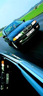 Även föraren i den nästan lika sofistikerat byggda trean är i stort sett förskonad från slag från potthål och kanter, vilket förutom komforten även kommer väggreppet till godo. Och väggreppet hos den nya trean är ingenting annat än sensationellt. När föraren väl vågar lita på antispinnsystemets förmåga att kunna hämta hem bilen innan den flyger av vägen sätter i stort sett bara modet gränsen. Ytterligare en elektronisk finess är den intelligenta bromsfördelningen (CBC), som med hjulsensorernas hjälp avgör hur bromskraften skall fördelas mest effektivt. Det praktiska resultatet är extremt korta bromssträckor och bättre balans och styrbarhet vid bromsning i kurvor. Efter vår halvdagslånga dust med det småländska vägnätet pustade vi ut på ett pensionat. Stämningen var uppsluppen, nästan exalterad. Den nya trean hade väckt till livs känslor som några av oss nästan hade glömt bort. Inte ens en titt i prislistorna, där siffrorna 309 000 blinkar varnande, lyckades helt dämpa entusiasmen över den bayerska nyfödingen.