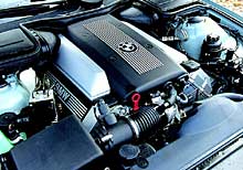 BMW kontrar med åtta cylindrar på tillsammans 4,4 liter. Effekten är 286 hk och det maximala momentet 440 Nm vid 3 600 varv. Skillnaden i effekt är måhända försumbar men upplevelsen är väsensskild. Volvomotorn går ytterst tyst, jämnt och därtill kraftfullt genom hela registret. En stark smygare. Men framhjulsdriften förtar ibland en hel del av den sofistikerade känslan. Vid avspänd körning reflekterar inte föraren över drivhjulens placering, men vid häftiga gaspådrag i låg hastighetoch i kurvor griper momentet in på ett oborstat vis: kraften vill ta kommandot över rattandet. S80 är dock laddad med hämmande och kontrollerande teknologi. Ett antispinnsystem sänker motoreffekten vid hjulspinn, en diffbroms fördelar kraften, en elektronisk broms hejdar de hjul som spinner mest i hastigheter upp till 80 km/h (s k "TRACS") och dessutom tämjs motorn under växling, för högre komfort. Alltså både bälte och hängslen, men drivhjulen kan släppas fria om man trots allt vill låta dem spinna. Kanske kommer det kännbara momentrycket i ratten tonas ned en aning eftersom Volvo funderar på att begränsa TRACS-ingreppet upp till 40 km/h. Den fyrstegade automatlådan som är standard (manuell finns ännu ej) jobbar exemplariskt med snabba och smidiga växlingar och det "manuella" drivetronicläget växlar inte upp vid varvtalsstoppet vilket ger en manuell känsla. Testdatorn visar att T6 skuggar Volvo S70 R upp till 100 km/h (7,6 sekunder mot 7,0) trots automatlåda och dryga 150 kg extravikt. Till 200 km/h är S80 snabbare. När Volvos R-modeller känns busiga, råa, snabba, vingliga är S80 sval, sofistikerad, men alltså snudd på lika snabb.