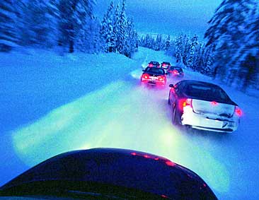 Hög, ren luft. Minus 30 grader och snön knarrar torrt under hjulen. Det är en vanlig dag i november månad i Lappland, helt nära polcirkeln. Ännu har varken Lucas-Varity, Conti/ITT eller Bosch, världens tre stora underleverantörer av elektroniska körhjälpmedel för bilar som alla testar i dessa trakter, kommit igång med arbetet på allvar. Själva är vi tidiga och arbetar som vanligt på Ice-Track AB:s banor norr om tätorten. Isarna är inte tillräckligt starka för att bära en bil men sjöisar har blivit omoderna. Istället använder vi landbanor med asfaltsbeläggning, som omväxlande konstfryses respektive eluppvärms till önskade förhållanden. Just idag behövs inte någon konstfrysning. Andedräkten fryser redan i höjd med nästippen. Johan och Bengt testar anti-spinn och de låsningsfria bromsarna på split-frictionbanan. Alrik, Thomas, Michael och jag gör väghållningsprover på cirkelbana och undanmanöverprov i konbanan. Alla de stora sexcylindriga vagnarna fungerar i det kalla vädret, men Audis turbo vill inte ge fullt laddtryck till dieselsexan och ett och annat anti-spinn-system faller ur när snön packas undertill. Chryslers klimatautomatik skickar med jämna mellanrum ut svinkalla vindar i kupén, som för att hålla oss vakna. För en mellaneuropé skulle förhållandena klassas som extrema. Delar av bilindustrin går därför över till att begränsa provningen till minus 20 grader fungerar det inte under lägre temperaturer är det bara någon tokig lapp som klagar. För oss svenskar är det självklart att bilen skall klara en rejäl köldknäpp, som även kan slå till i Skåne. Det är därför vi jobbar så ambitiöst med våra vintertester. Sommarförhållanden klarar alla bilar. Men den svenska vintern går vissa bet på. Det har vi sett varje år under våra omfattande vintertester, och det ser vi än en gång i detta test. Två svenskar, tre tyskar och en amerikan. Två dieslar och fyra bensinare. Alla med sexor. Efter en veckas vintertestande visar sig bara tre av sex hålla måttet. Tre faller igenom på anmärkningsvärda sätt under testet. Det hade vi aldrig kunnat se en vacker sommardag. Den svenska vintern är en biltestares bäste vän.