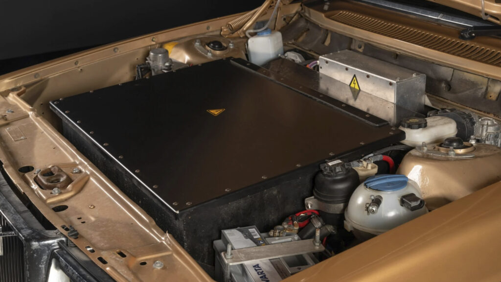 Den gamla trötta V6:an har bytts ut mot en 140-hästars elmotor från Siemens som ger 300 Nm i vridmoment. Kraften leds till bakhjulen genom en tidstypisk automatlåda från ZF (ZF4HP22).