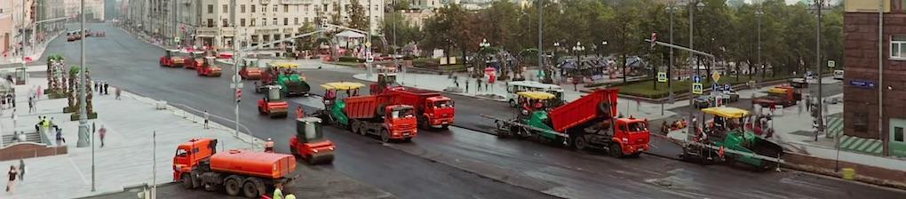 Supereffektiv asfaltläggning – 300 fordon i åtta filer