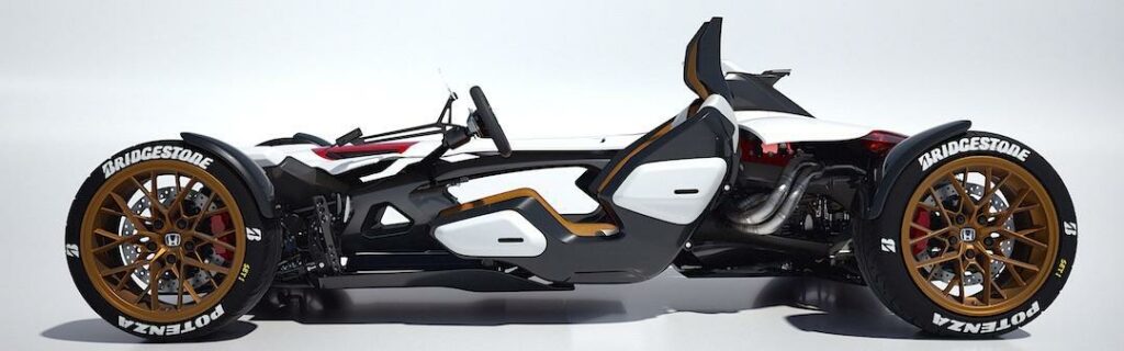 Vad händer om man sammanför det bästa från motorcykel och bil? Enligt Honda får man det här, en 1,0-liters V4-motor som ger 215 hk och går att varva till 14.000 rpm, 405 kilos vikt och föraren placerad i mitten, som en formelbil. Vad väntar ni på? Sätt igång och producera.
