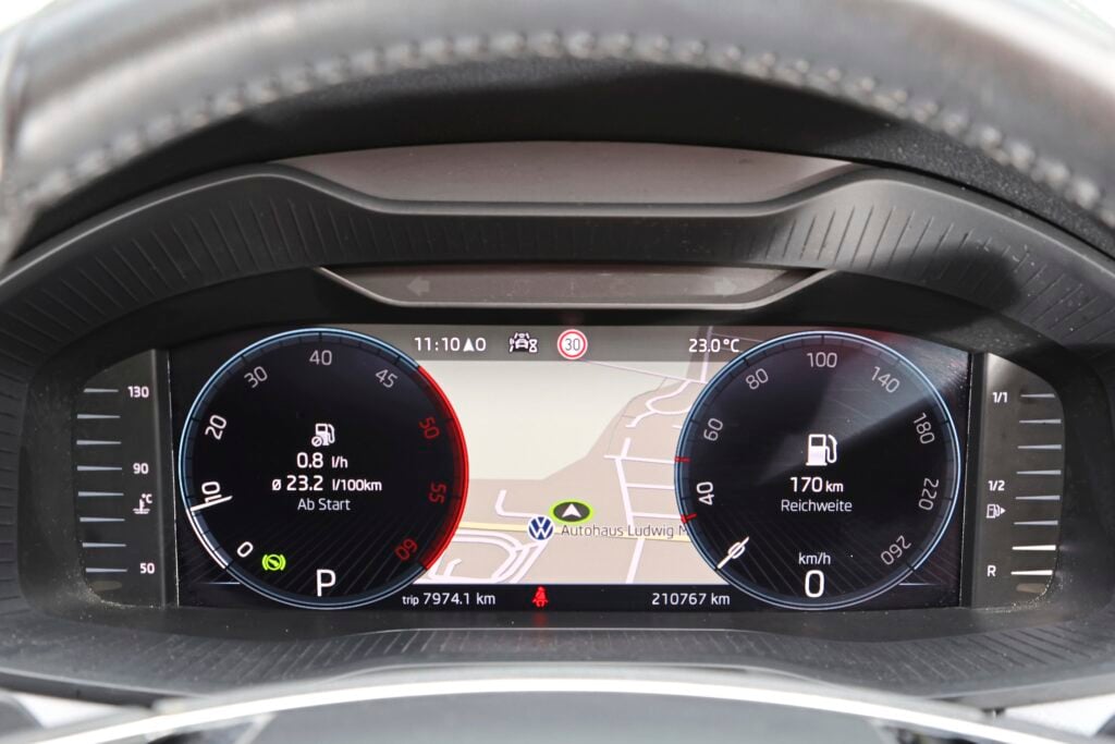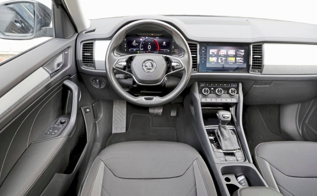 Betydligt mer irriterande var däremot att infotainmentsystemet kraschade flera gånger. Trots upprepade försök från en besättning med alltmer kurrande magar, gick det inte att locka fram vägen till närmaste snabbmatsrestaurang ur navigatorn. Detta trots att vår Kodiaq hade MIB 3 ombord – ännu en modulär pryl från VW, den tredje generationens infotainmentplattform, som i början vägrade att fungera stabilt.