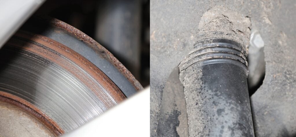 HÖGER: Kan spricka: Damaskerna kring drivknutarna. Defekta hjullager förekommer också i enstaka fall.
