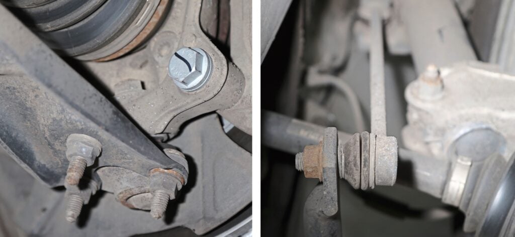 HÖGER: Om det slamrar när du kör rakt fram men inte i kurvor är stagen till krängningshämmaren de första misstänkta.