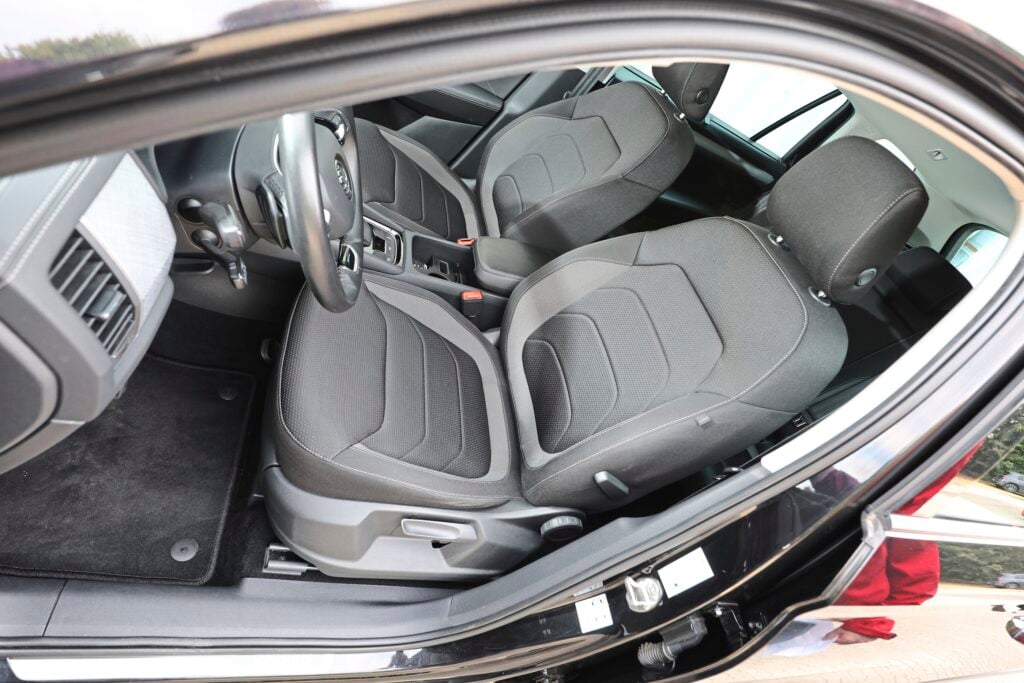 Vi tar nu i stället plats i första raden, i väl tilltagna standardstolar. En avslappnad sittposition hittas snabbt, och med ett tyst murrande ger sig TDI-motorn iväg. Det är versionen med 200 hk och 400 Newtonmeter.